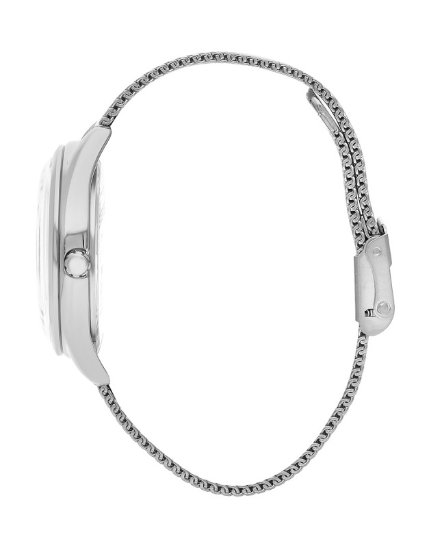 Стильные женские наручные часы в минималистичном дизайне. Циферблат закрывает выпуклое минеральное стекло. Браслет выполнен в технике миланского плетения. Вес часов 60 грамм. Гарантия 1 год.