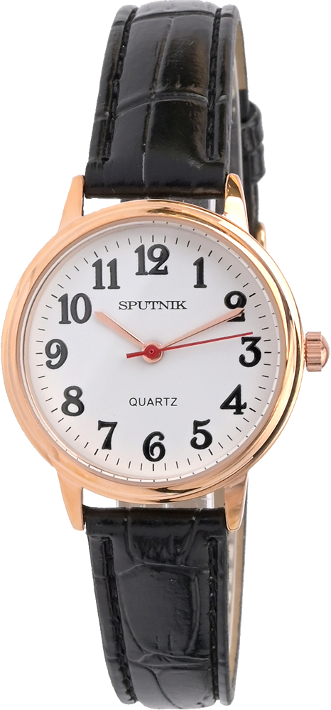 Миниатюрные женские часы Спутник с круглым корпусом и кожаным ремешком. Точность хода обеспечивает японский кварцевый механизм. Ремешок с классической застежкой. Гарантия 6 месяцев.