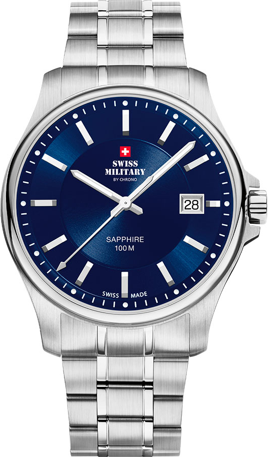 Классические мужские часы Swiss Military by Chrono - идеальный спутник на все времена и обязательный элемент коллекции часов любого мужчины. Присутствует окошко даты. Заводная головка с защитой. Точность хода обеспечивает швейцарский кварцевый механизм ETA. Браслет с раскладывающейся застежкой. Гарантия 5 лет.