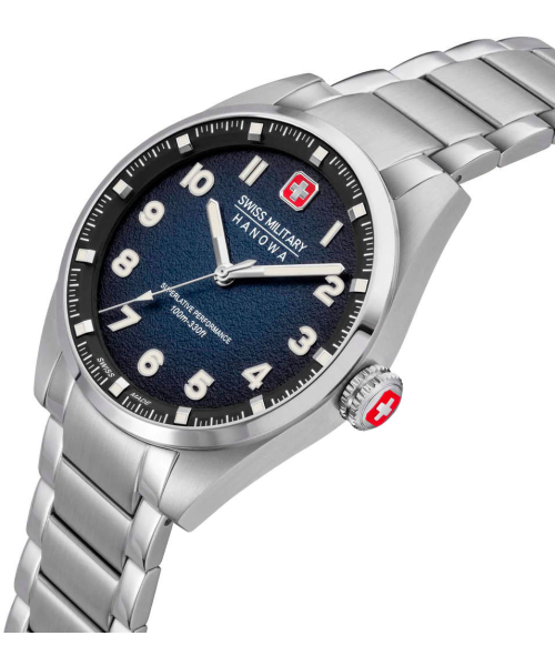 Мужские наручные часы Swiss Military Hanowa с четкими и простыми линиями. Стрелки и метки с люминесцентным покрытием, которое светится в темноте. Завинчивающаяся задняя крышка. Браслет с раскладывающейся застежкой. Гарантия 3 года.