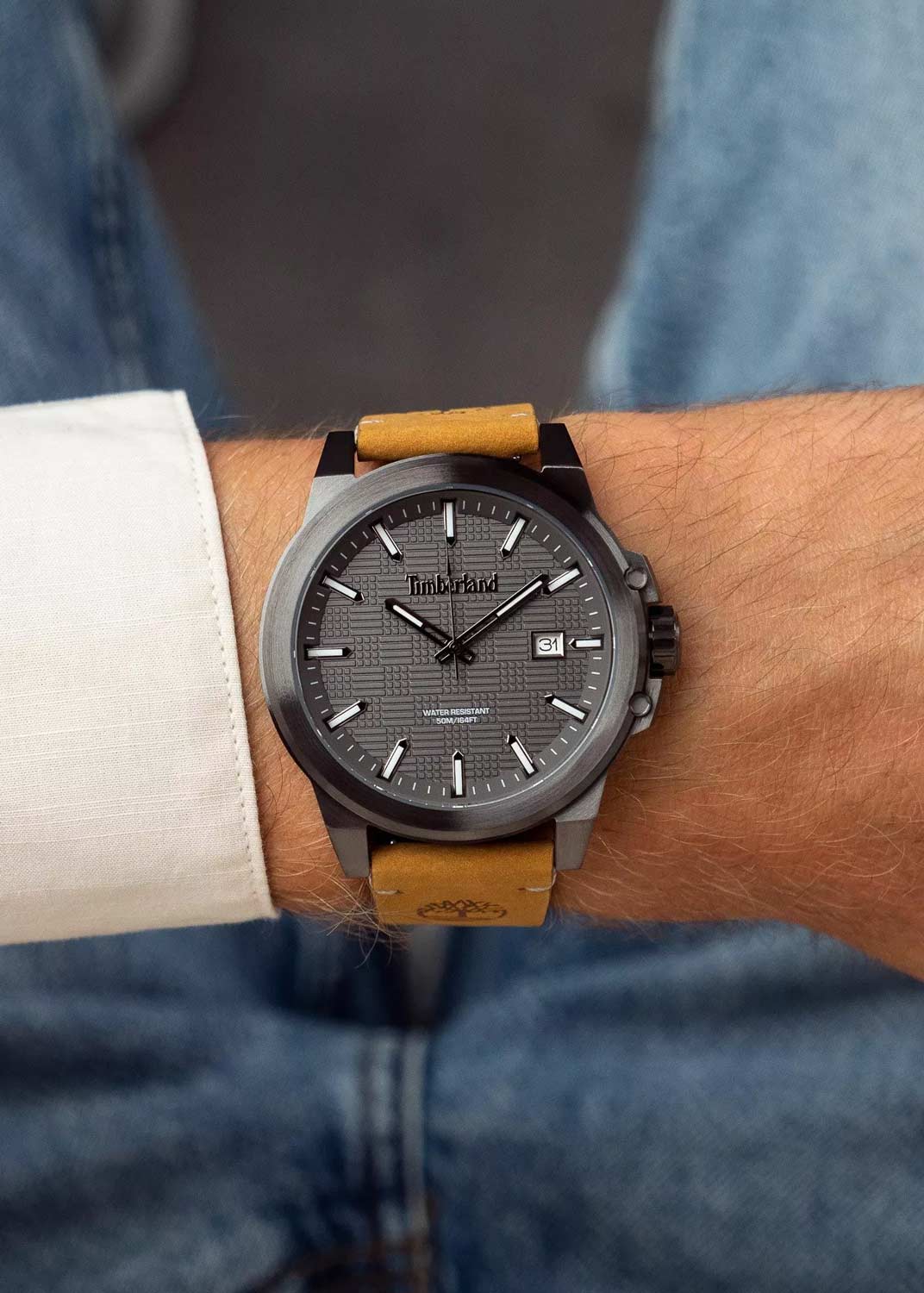 Практичные мужские часы Timberland на кожаном ремешке. Присутствует окошко даты. Заводная головка с защитой. Завинчивающаяся задняя крышка. Ремешок с классической застежкой. Гарантия 2 года.