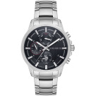 Стильные и практичные мужские часы с дополнительным отображением на малых циферблатах даты, дня недели и текущего времени в 24-х часовом формате. Заводная головка с защитой. Завинчивающаяся задняя крышка. Браслет с раскладывающейся застежкой. Гарантия 2 года.