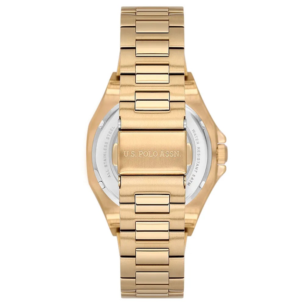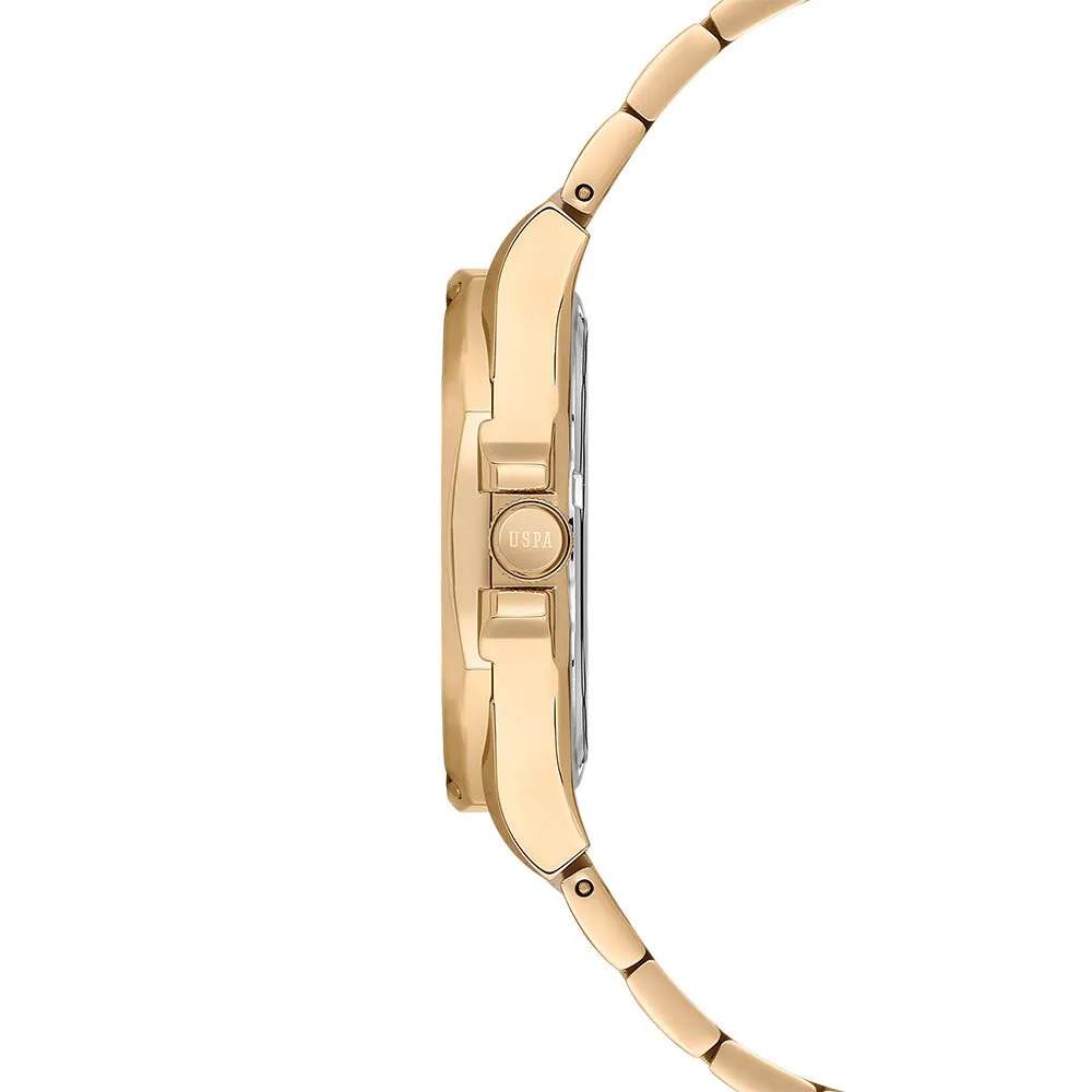 Стильные женские часы от U.S. Polo Assn с круглым корпусом и стальным браслетом. Присутствует окошко даты. Заводная головка с защитой. Завинчивающаяся задняя крышка. Браслет с раскладывающейся застежкой, обхват запястья до 180 мм. Вес часов 105 грамм. Гарантия 2 года.
