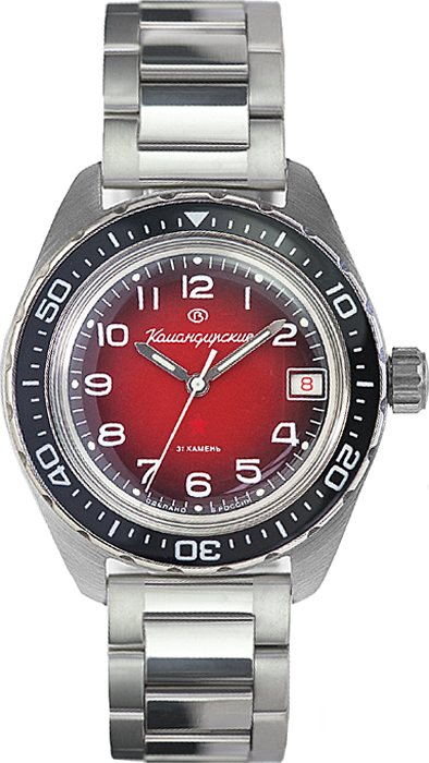 Мужские механические наручные часы Восток Командирские в стальном корпусе. В механизме 31 камень, частота 19800 полуколебаний/час. Запас хода при полном заводе пружины - 31 час. Календарь мгновенного действия. Автоподзавод с предохранительным устройством от перезаводки пружины. Присутствует окошко даты. Циферблат закрывает органическое стекло сферической формы. Завинчивающаяся заводная головка. Браслет с раскладывающейся застежкой. Гарантия 1 год.