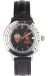 Мужские механические часы с автоподзаводом Восток Командирские ВМФ. Механизм "Восток 2416Б" калибра 24 мм с центральной секундной стрелкой. Чисто рубиновых камней - 31. Энергетическая автономность не менее 31 часа. Календарь мгновенного действия. Частота: 19800 полуколебаний/час. Противоударное устройство узла баланса. Циферблат закрывает органическое стекло сферической формы. Корпус выполнен из часовой латуни с покрытием хромом. Задняя крышка часов из нержавеющей стали. Завинчивающаяся заводная головка. Вращающийся безель. Ремешок из натуральной кожи с классической застежкой. Вес часов 62 грамма. Гарантия 1 год.