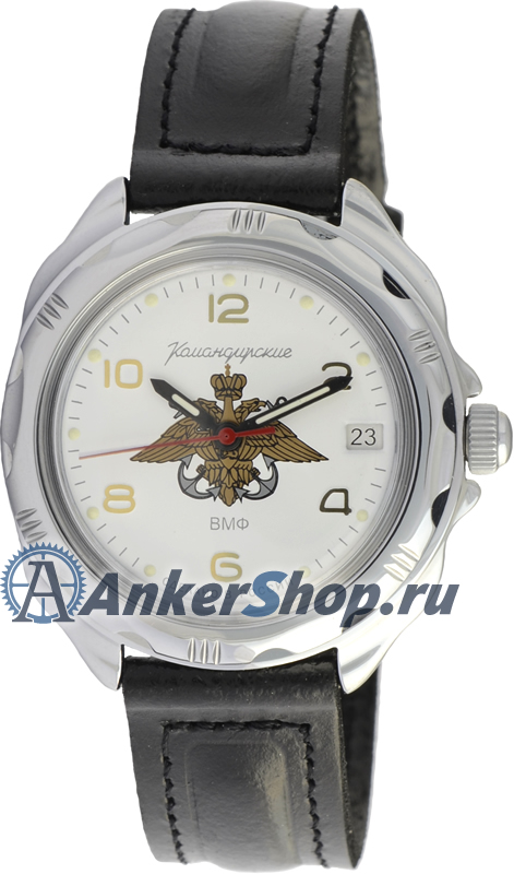 Восток Командирские ВМФ. Механизм калибра 24 мм с центральной секундной стрелкой. В механизме 17 камней. Противоударное устройство узла баланса. Запас хода не менее 36 часов. Поворачивающийся безель. Завинчивающаяся заводная головка с защитой. Корпус выполнен из часовой латуни с покрытием нитридом титана. Задняя крышка часов из нержавеющей стали. Циферблат закрывает органическое стекло сферической формы. На стрелки и часовые метки нанесен светонакопительный состав для возможности считывания времени в темноте. Ремешок из натуральной кожи с классической застежкой. Гарантия 1 год.
