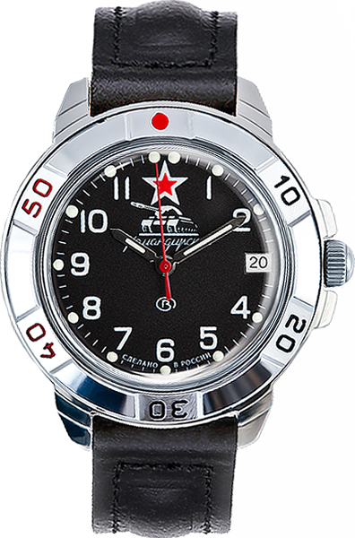 Мужские наручные часы Восток Командирские с черным циферблатом, который дополняют изображение танка и красная звезда в 12-ти часовой отметке. Сердцем модели является механизм Восток 2414А, в механизме 17 камней. Запас хода не менее 36 часов. Противоударное устройство узла баланса. Присутствует апертура даты. На стрелки и часовые метки нанесен светонакопительный состав для возможности считывания времени в темноте. Поворачивающийся безель. Завинчивающаяся заводная головка. Корпус выполнен из часовой латуни с покрытием хромом. Циферблат закрывает выпуклое органическое стекло. Задняя крышка выполнена из нержавеющей стали. Ремешок из натуральной кожи с классической застежкой. Гарантия 1 год.
