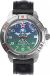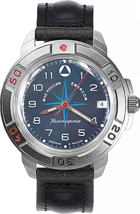 Мужские механические наручные часы Восток Командирские "МЧС России" на кожаном ремешке. Циферблат украшает изображение подводной лодки. Механизм калибра 24 мм с центральной секундной стрелкой. В механизме 17 камней. Противоударное устройство узла баланса. Запас хода не менее 36 часов. Поворачивающийся безель. Завинчивающаяся заводная головка с защитой. Корпус выполнен из часовой латуни с покрытием оксокарбонитридом титана, придающем корпусу матовый серый цвет. Задняя крышка часов из нержавеющей стали. Циферблат закрывает органическое стекло сферической формы. На стрелки и часовые метки нанесен светонакопительный состав для возможности считывания времени в темноте. Ремешок из натуральной кожи с классической застежкой. Обхват запястья до 215 мм. Гарантия 1 год.