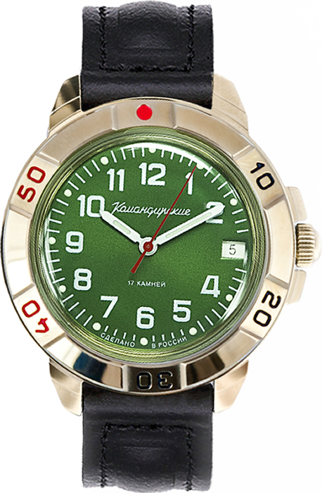 Мужские механические наручные часы Восток Командирские. Сердцем модели является механизм Восток 2414А, в механизме 17 камней. Запас хода не менее 36 часов. Противоударное устройство узла баланса. Присутствует апертура даты. На стрелки и часовые метки нанесен светонакопительный состав для возможности считывания времени в темноте. Поворачивающийся безель. Завинчивающаяся заводная головка. Корпус выполнен из часовой латуни с покрытием нитридом титана. Циферблат закрывает выпуклое органическое стекло. Задняя крышка выполнена из нержавеющей стали. Ремешок из натуральной кожи с классической застежкой, обхват запястья до 220 мм. Вес часов 60 грамм. Гарантия 1 год.