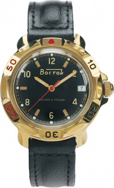 Мужские механические наручные часы Восток Командирские. Механизм калибра 24 мм с центральной секундной стрелкой. В механизме 17 камней. Противоударное устройство узла баланса. Запас хода не менее 36 часов. Поворачивающийся безель. Завинчивающаяся заводная головка. Корпус выполнен из часовой латуни с покрытием нитридом титана. Циферблат закрывает выпуклое органическое стекло. На стрелки и часовые метки нанесен светонакопительный состав для возможности считывания времени в темноте. Задняя крышка часов из нержавеющей стали. Ремешок из натуральной кожи с классической застежкой. Обхват запястья от 180 до 215 мм. (длина ремешка 75+115 мм). Вес часов 60 грамм. Гарантия 1 год.