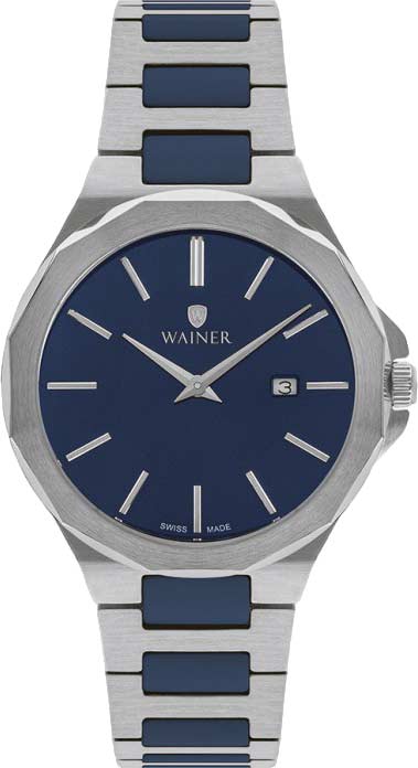 Мужские наручные часы Weiner Bach на стальном браслете. Циферблат закрывает устойчивое к царапинам и потертостям сапфировое стекло. Граненый безель из нержавеющей стали. Заводная головка с защитой. Браслет из нержавеющей стали с раскладывающейся застежкой. Вес 100 грамм. Гарантия 2 года.